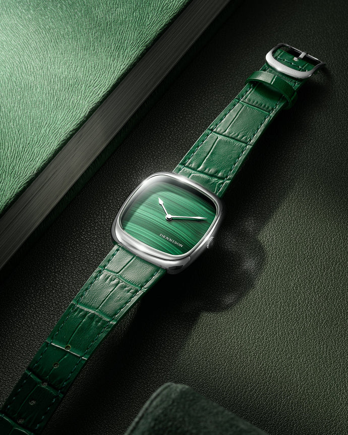 Dennison’s new watches make an immediate impression thanks to their distinctive 37mm cushioned square case. Available in either stainless steel or gold-tone cases, the A.L.D serves up different permutations of dials. From the eye-catching stone dials crafted in malachite, aventurine, or red agate, to the cleverly executed dual-time models, and capped off by the gradient models with their radial bursts of colour, all timepieces showcase Dennison’s design-led approach.