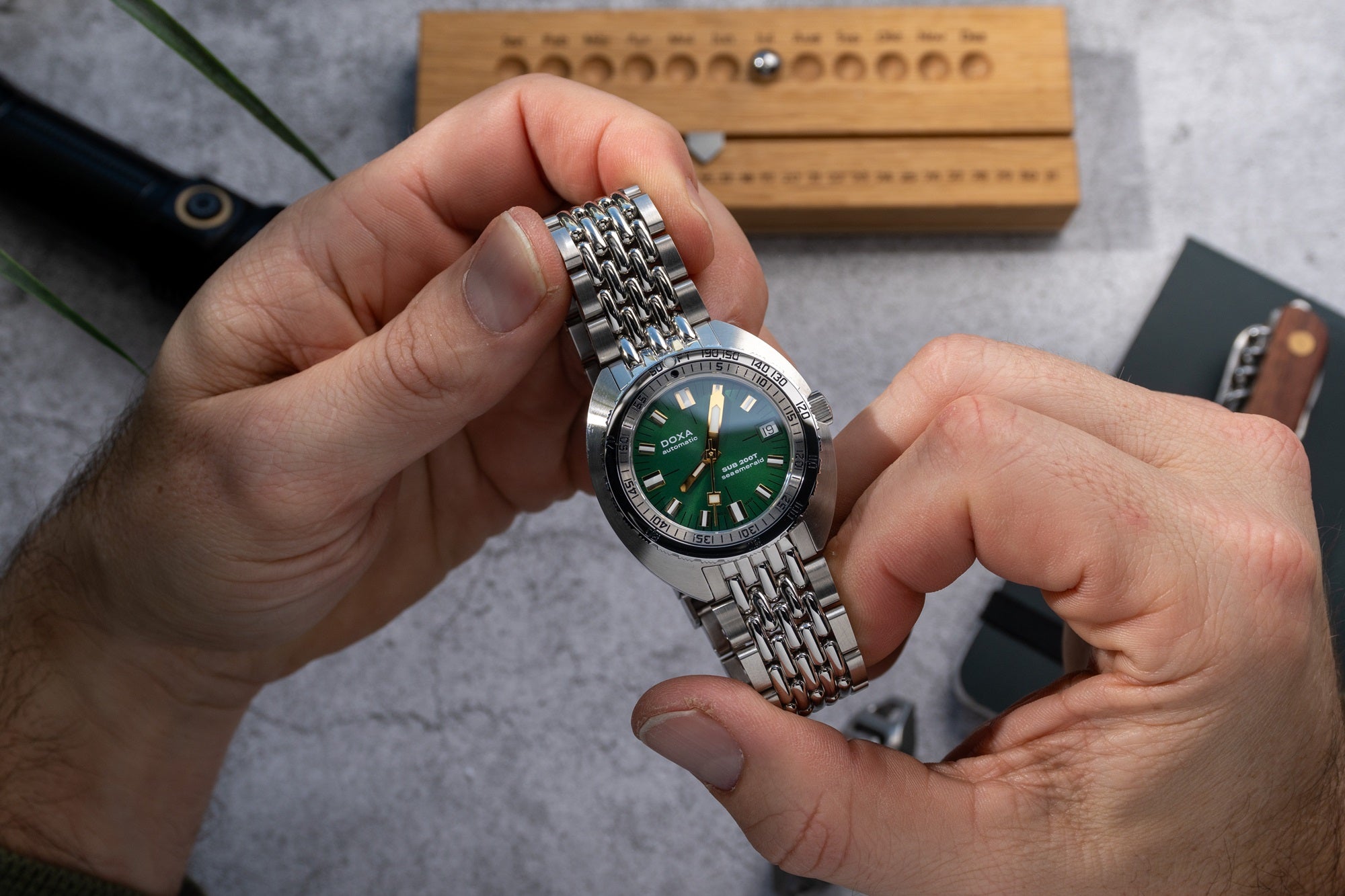 As an entry-level watch, the Doxa Sub 200 it’s equipped for any adventure. A traditional unidirectional bezel with a sapphire inlay ensures precise dive timing, while the robust stainless steel case and 200 metre water resistance rating guarantees performance even under pressure. Powering the timepiece is a reliable ETA 2824-2 Swiss automatic movement, known for its accuracy with a 28,800 vph rate and respectable 38-hour power reserve. To cater to diverse styles, Doxa offers the Sub 200 in a verity of configurations. Choose from six captivating dial colours, and pair it with either a sleek stainless steel bezel or a comfortable rubber for a personalised look.