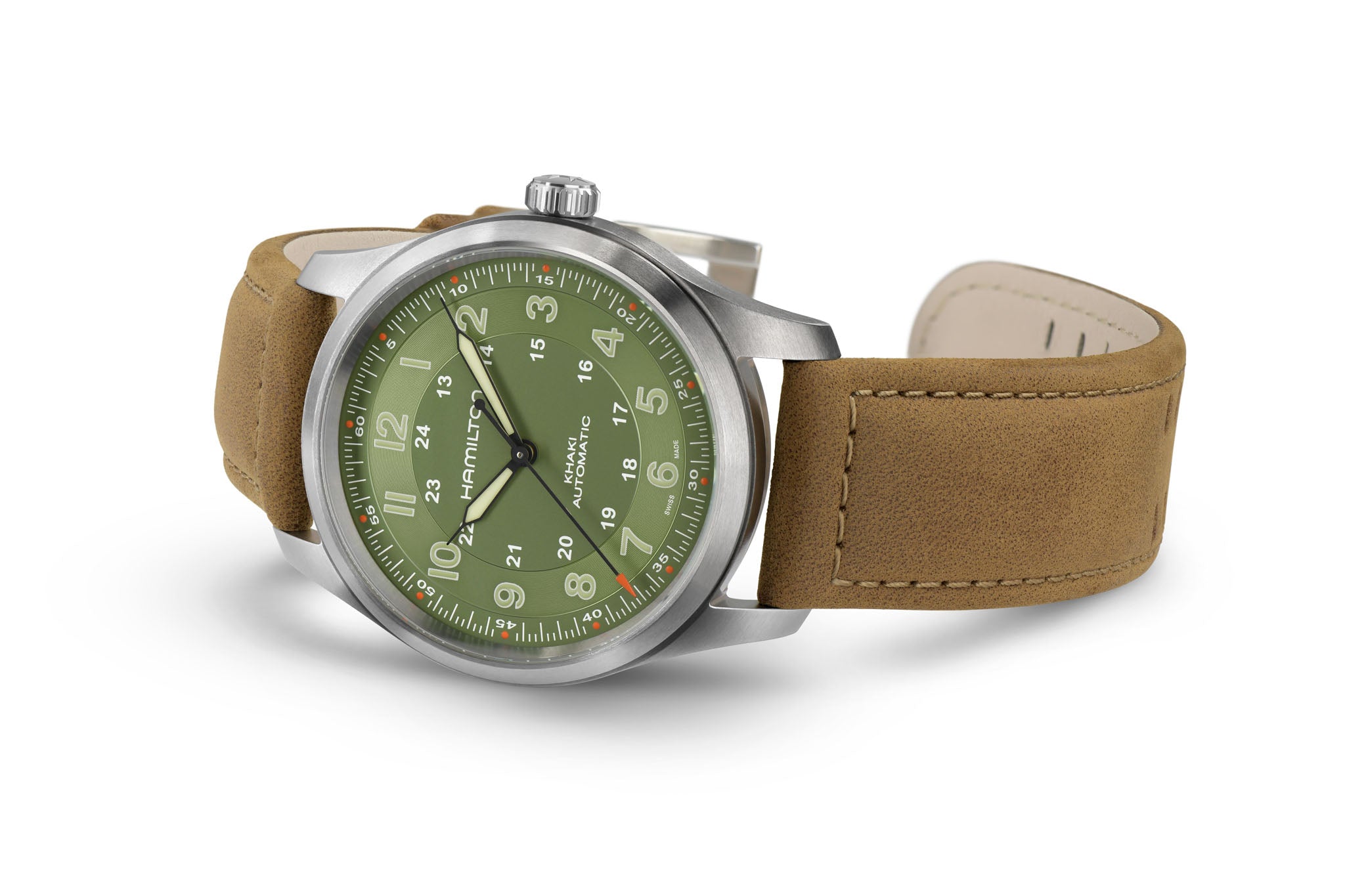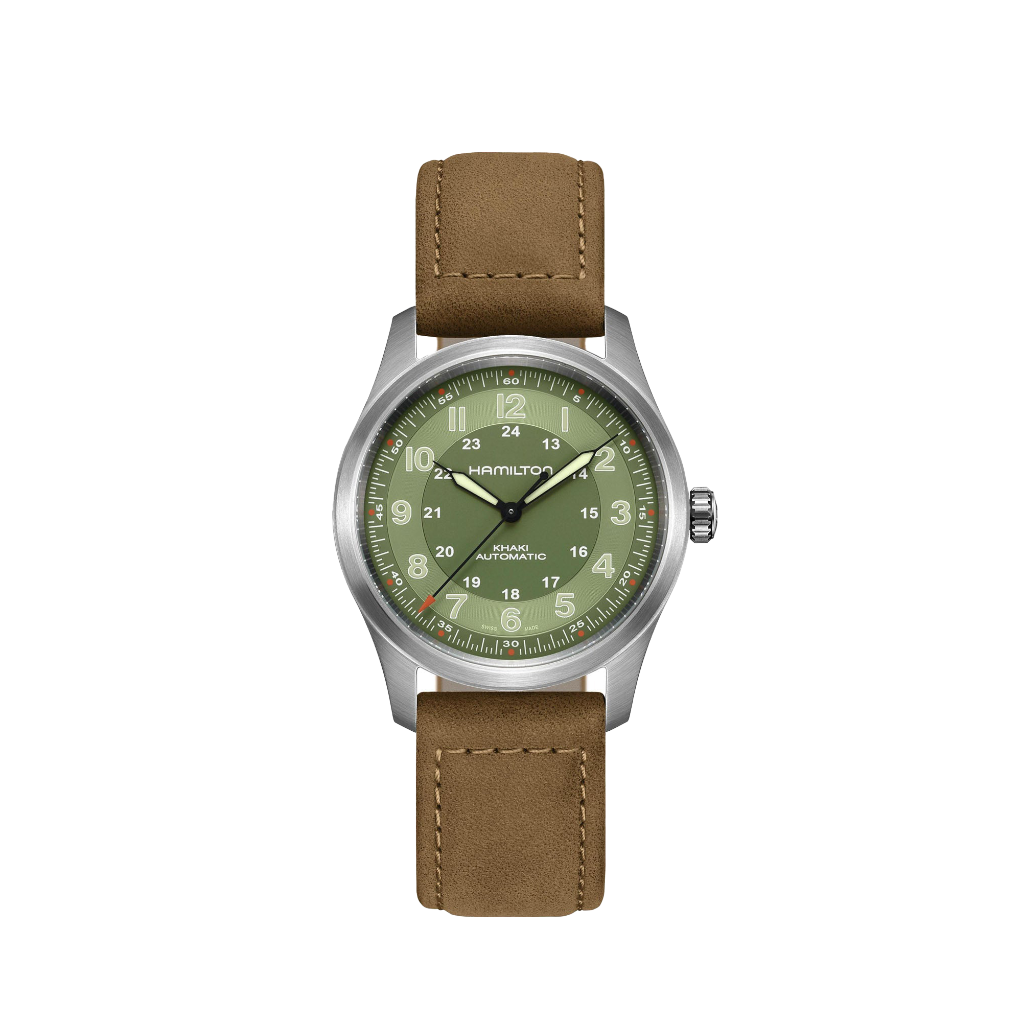 A century-long pedigree in military timepieces combined with lightweight materials make the Khaki Field Titanium Automatic the ultimate all-purpose watch for modern heroes. Truly fit for life in the field, the 38mm case size accentuates comfort and adaptability with a historically authentic design.